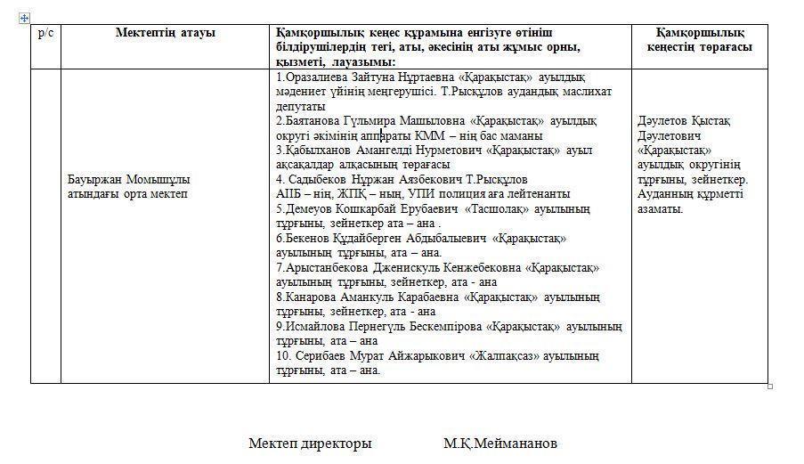 Қатысқандар: Қамқоршылық кеңес мүшелері, мектептің әкімшілік мүшелері